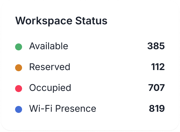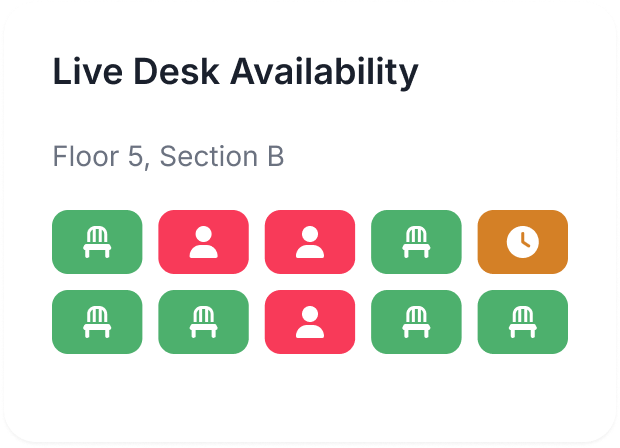Color‑coded statuses show whether a desk or room is available, reserved, or occupied. This clarity helps teams reduce congestion, ease decision-making, and keep the workday moving.