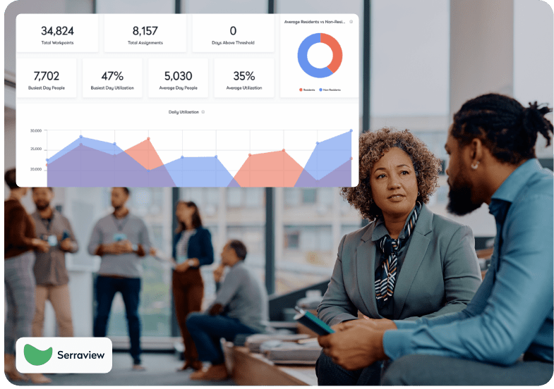 Serraview Live gives you a live view of occupancy across floors, neighborhoods, and desks. Spot trends, respond to changes, and support hybrid work using presence and status data you can trust. With fewer blind spots, teams reduce time on admin and make decisions that cut wasted space.